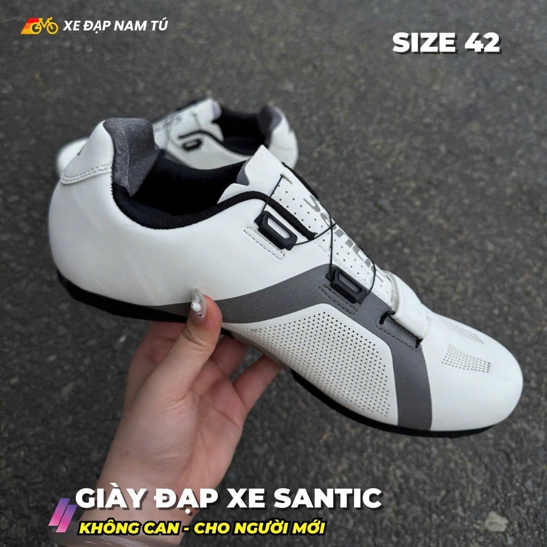 GIÀY ĐẠP XE SANTIC (KHÔNG CAN) CHO NGƯỜI MỚI, MÀU TRẮNG, SIZE 42