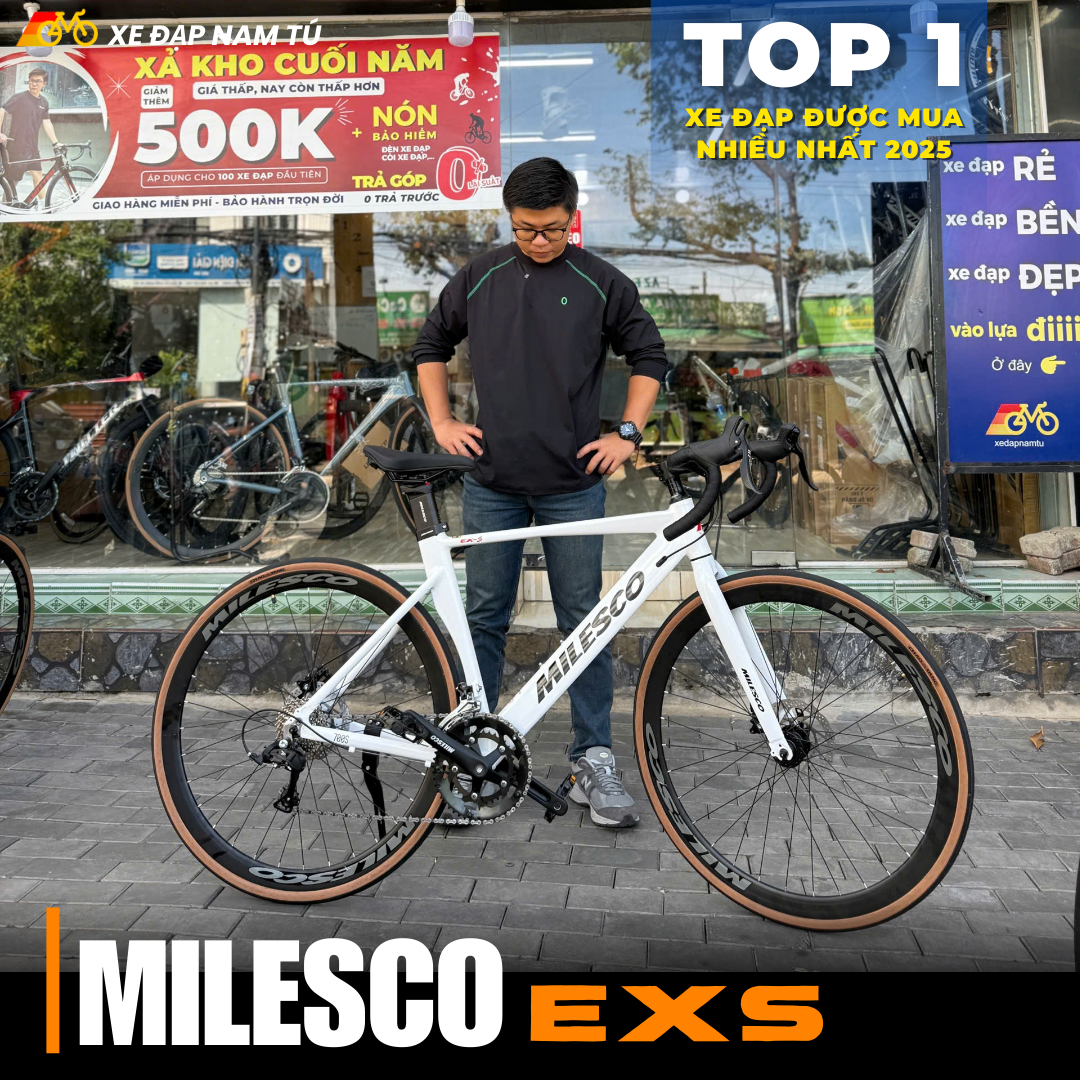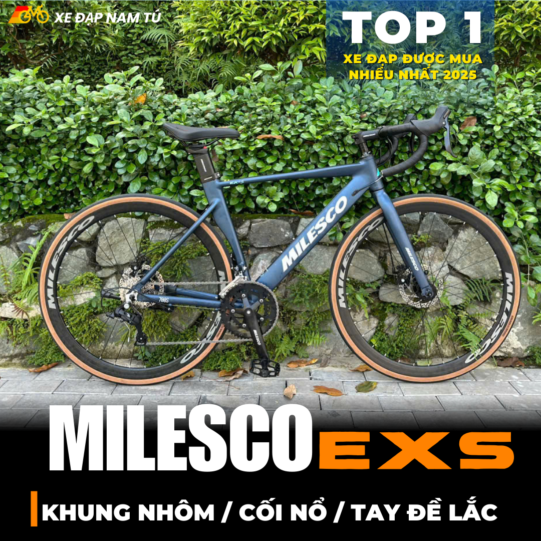XE ĐẠP ĐUA MILESCO EXS GEN 4, KHUNG NHÔM, TAY ĐỀ LẮC, CỐI NỔ LỚN