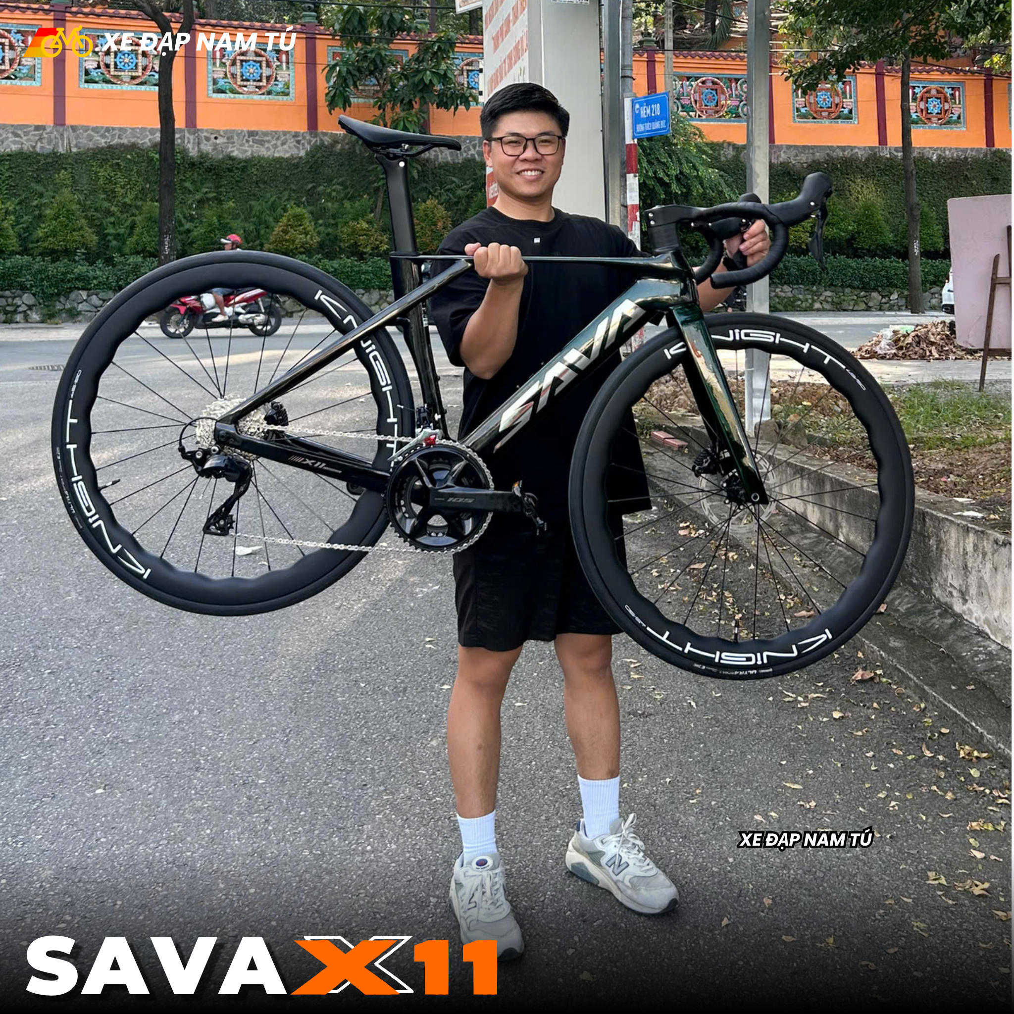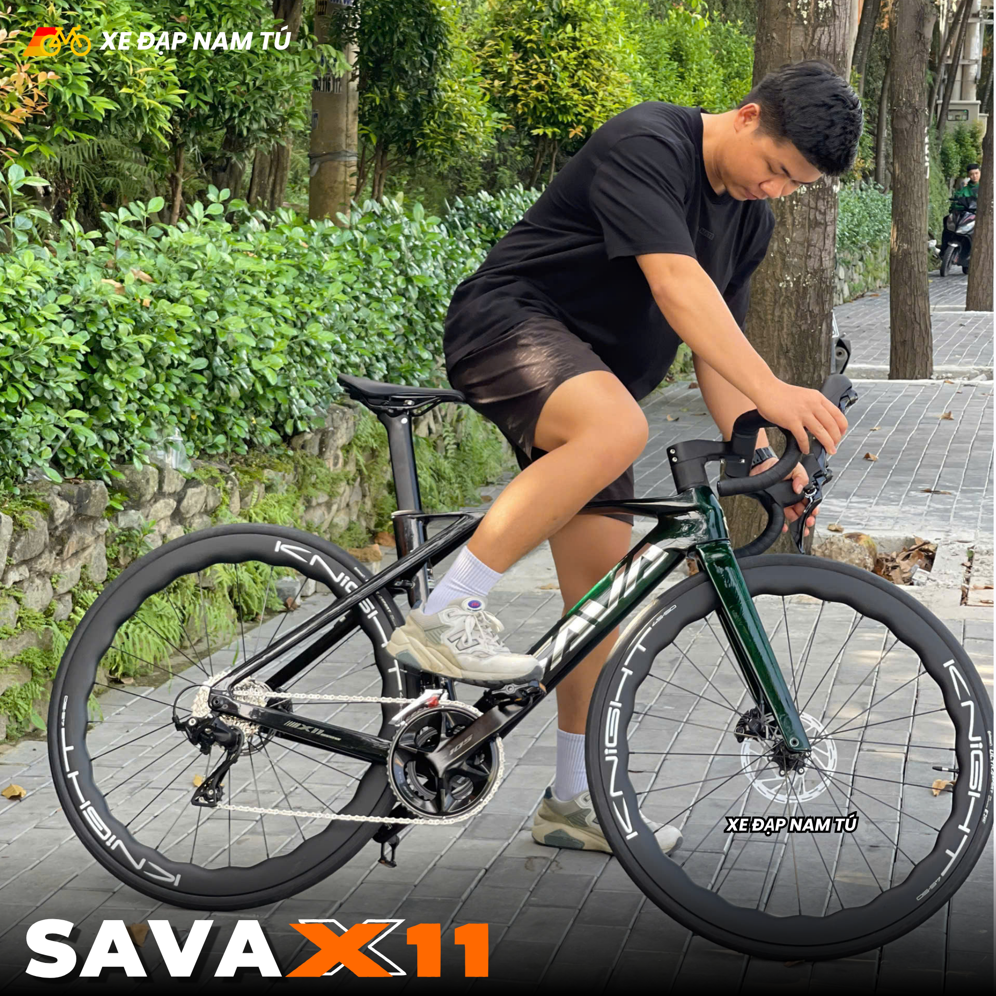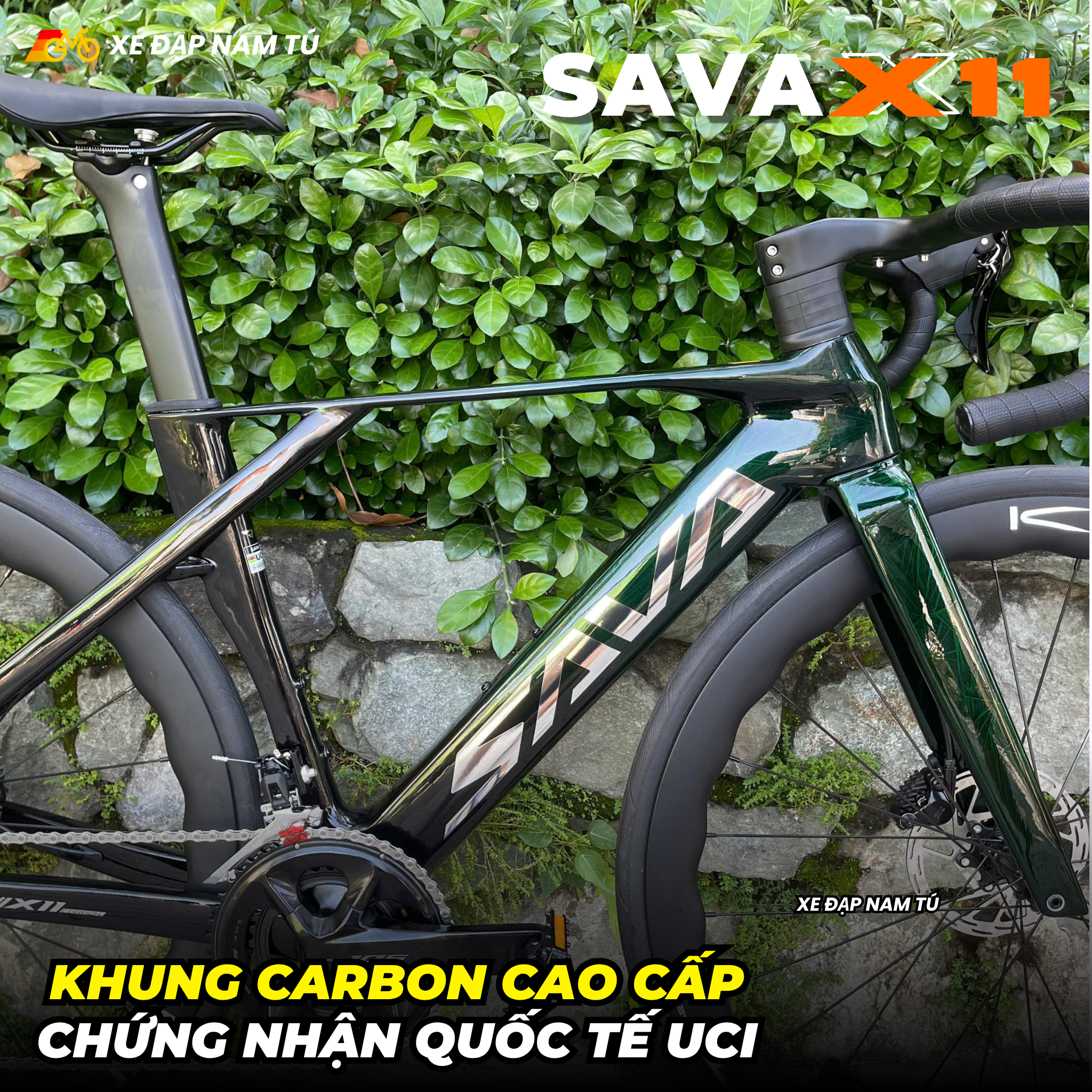 XE ĐẠP ĐUA SAVA X11 KHUNG CARBON (UCI), GROUP SHIMANO 105 NHẬT BẢN, ĐÙM BẠC ĐẠN CERAMIC