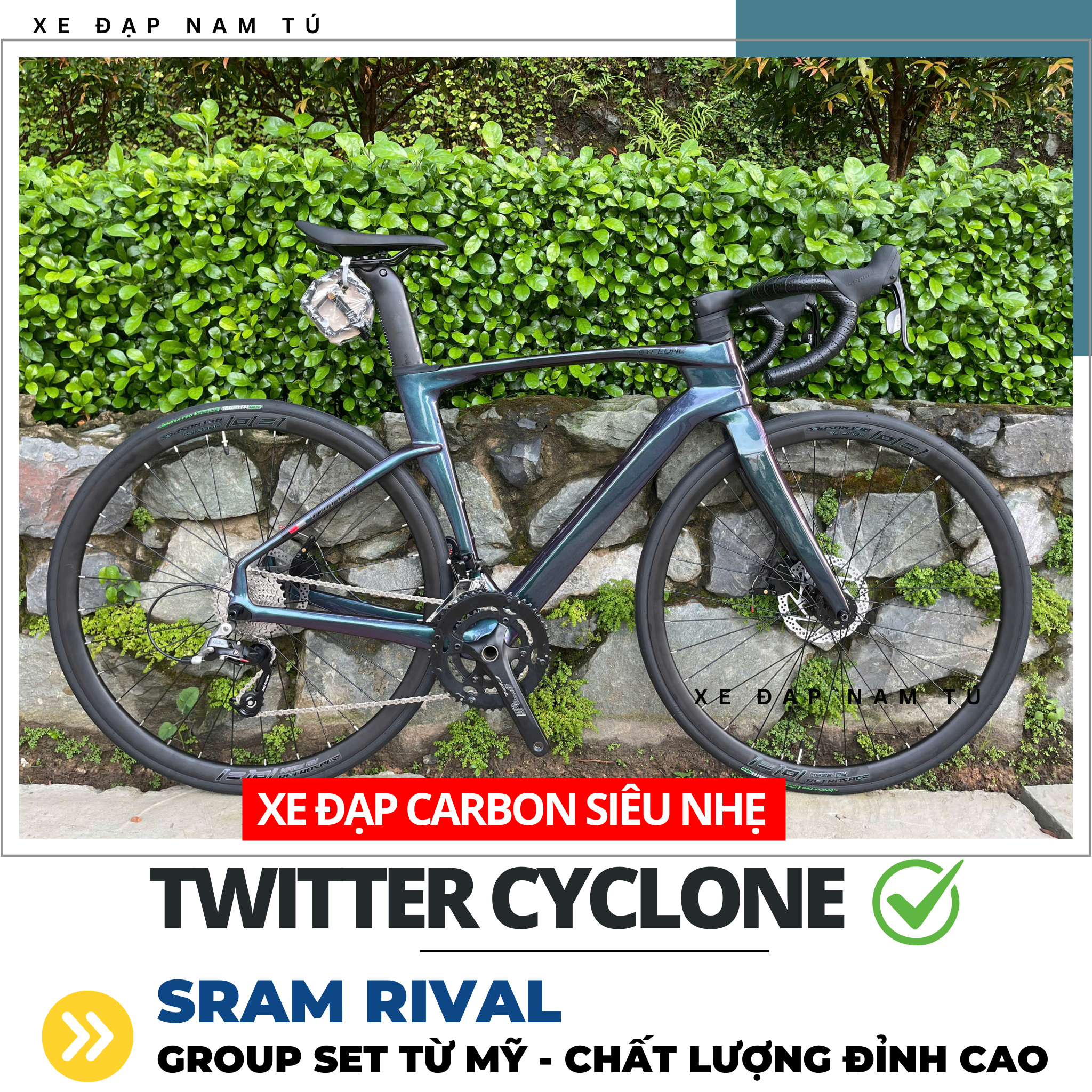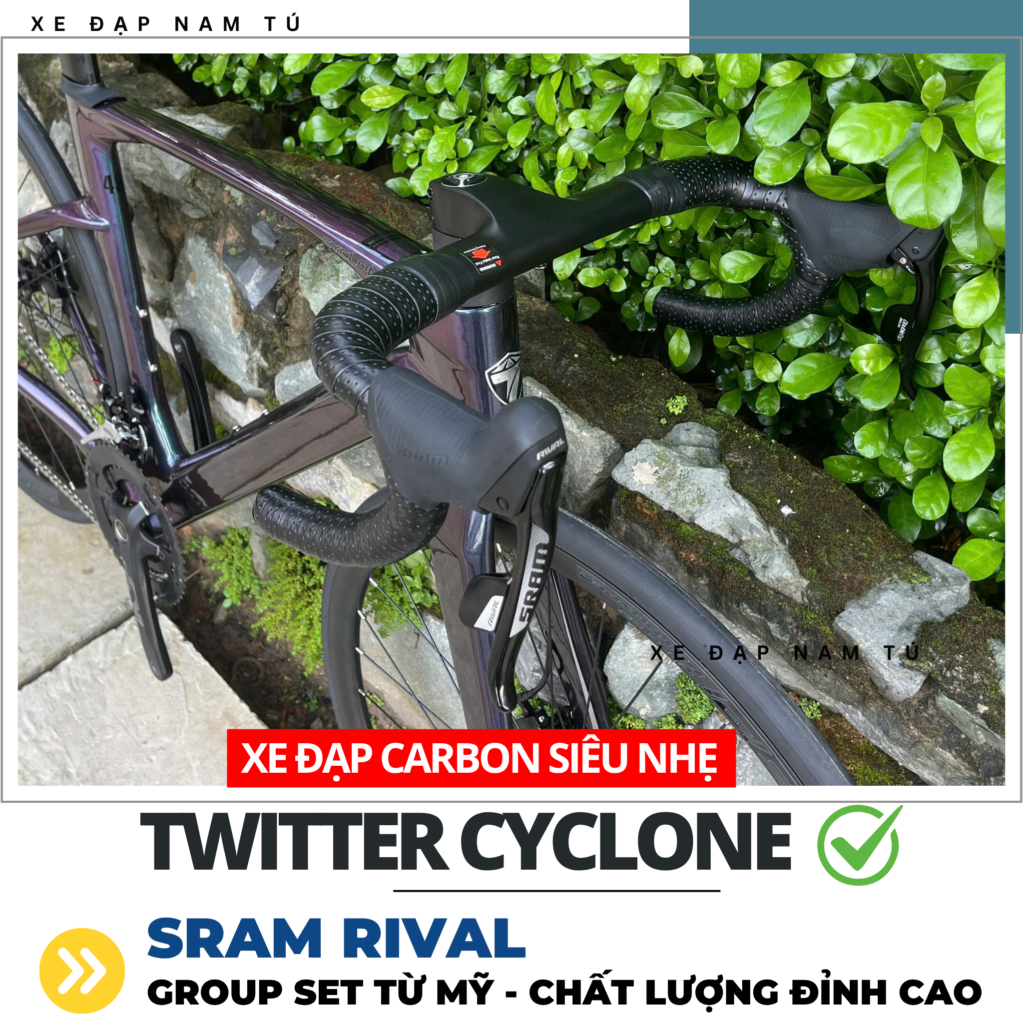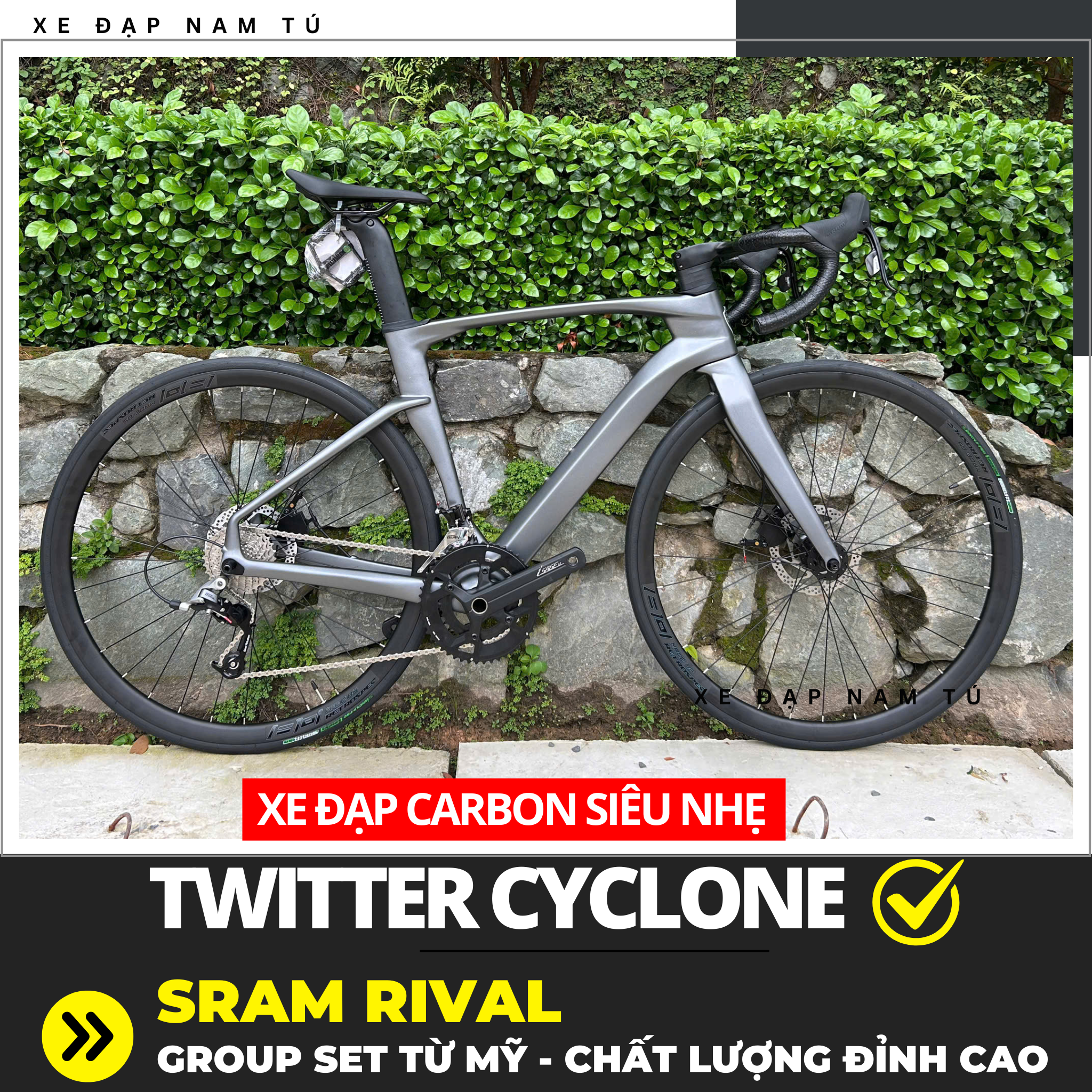 XE ĐẠP ĐUA TWITTER CYCLONE [2025] GROUP SRAM RIVAL, KHUNG SƯỜN CARBON