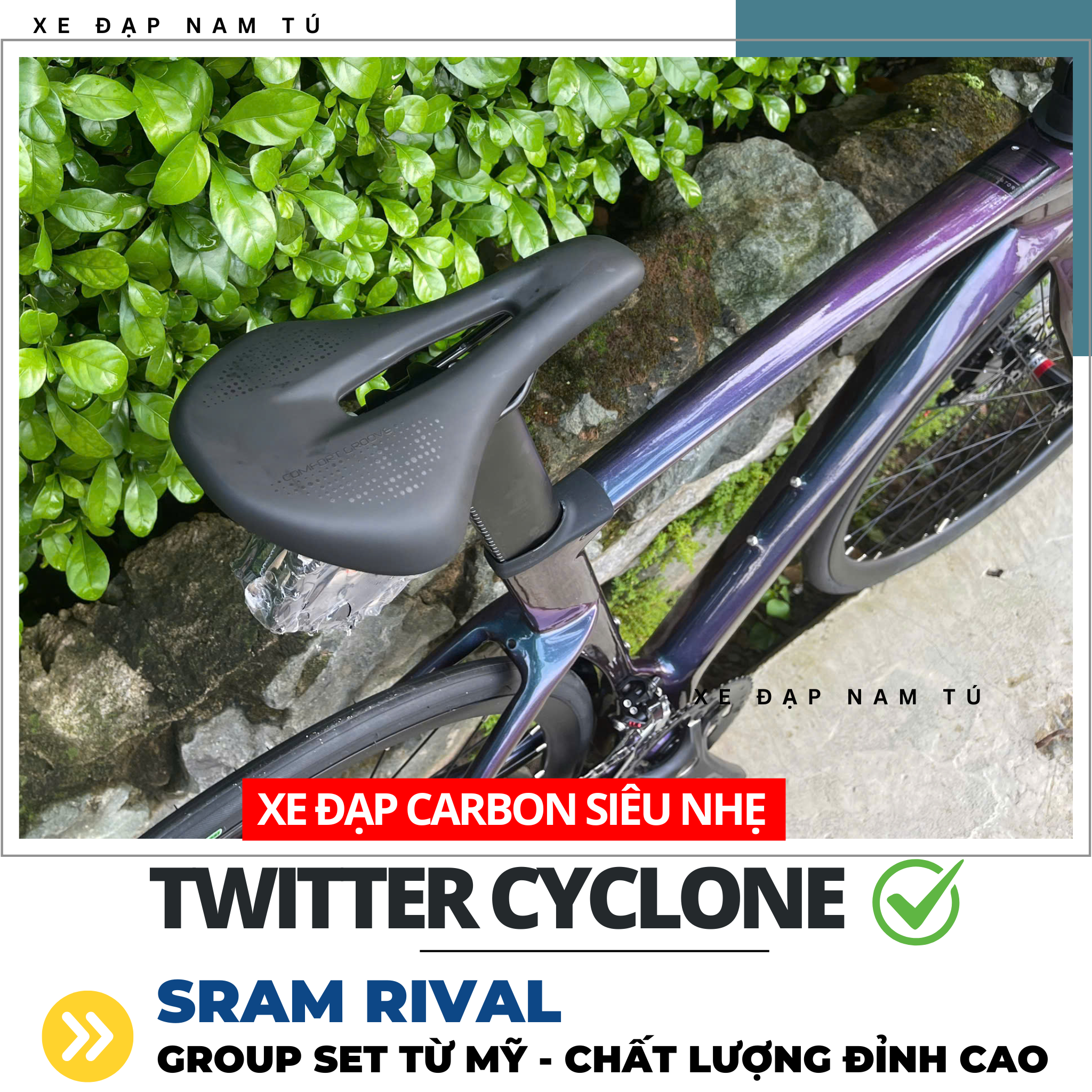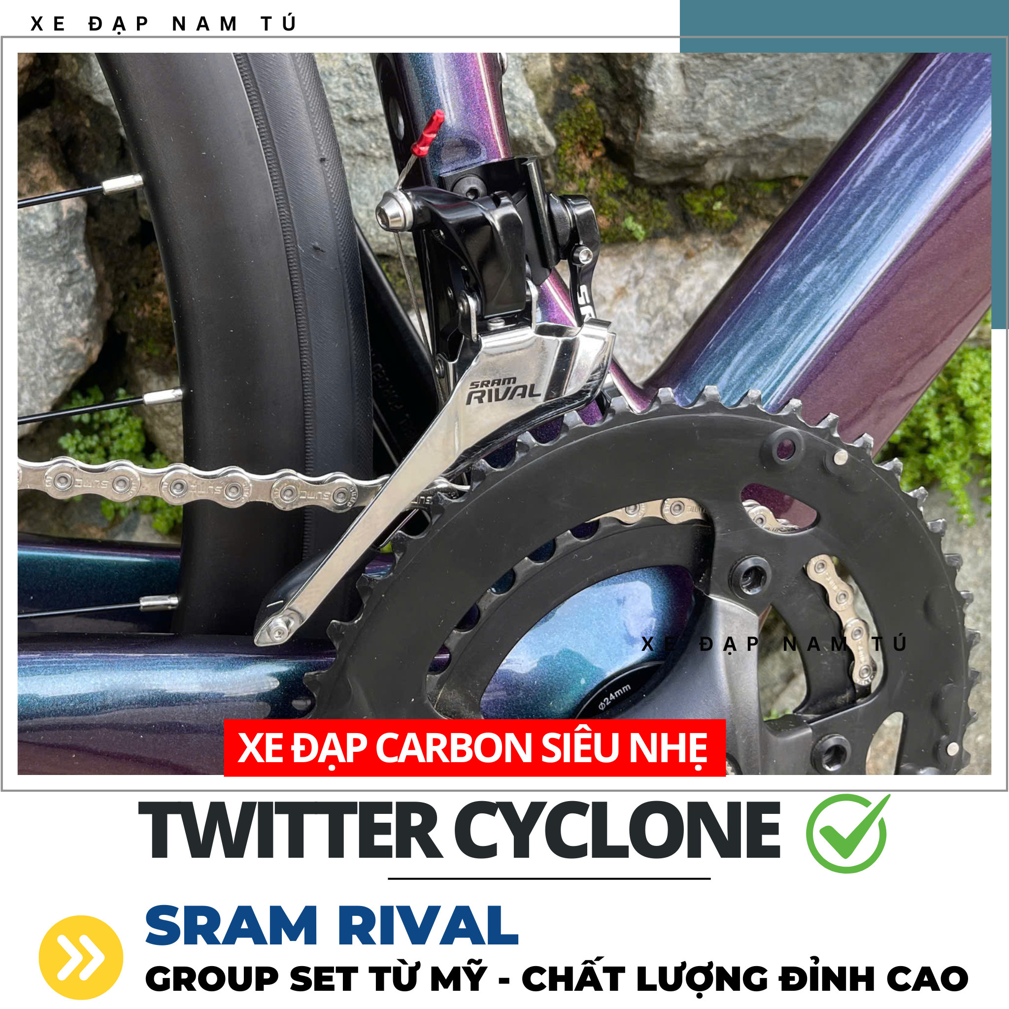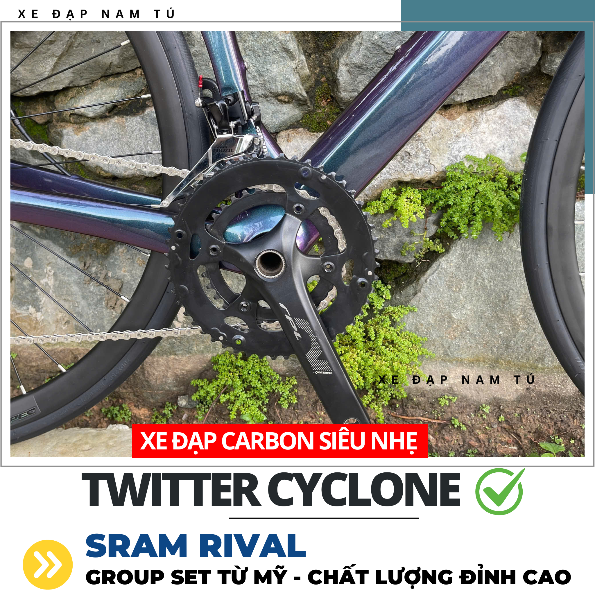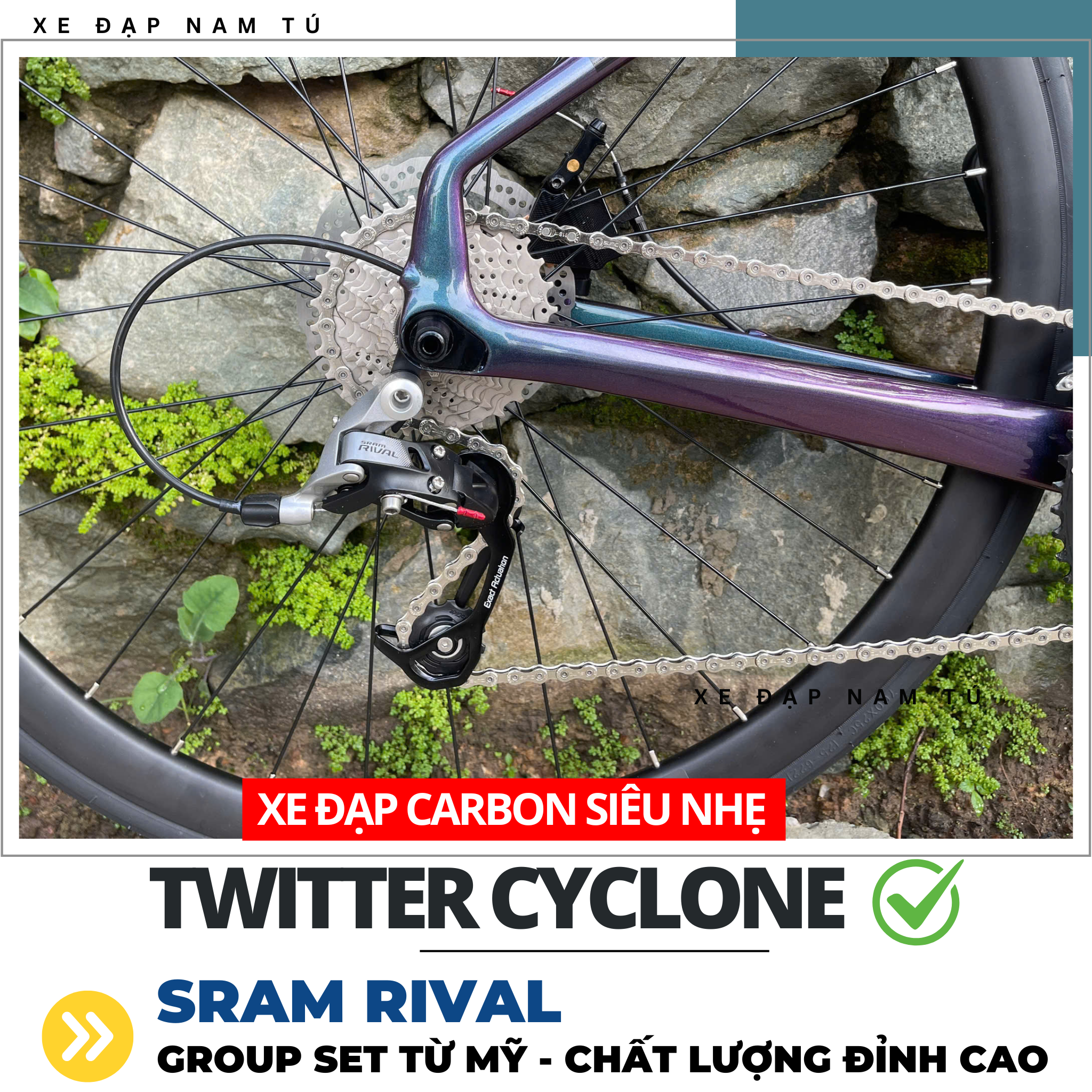 XE ĐẠP ĐUA TWITTER CYCLONE [2025] GROUP SRAM RIVAL, KHUNG SƯỜN CARBON