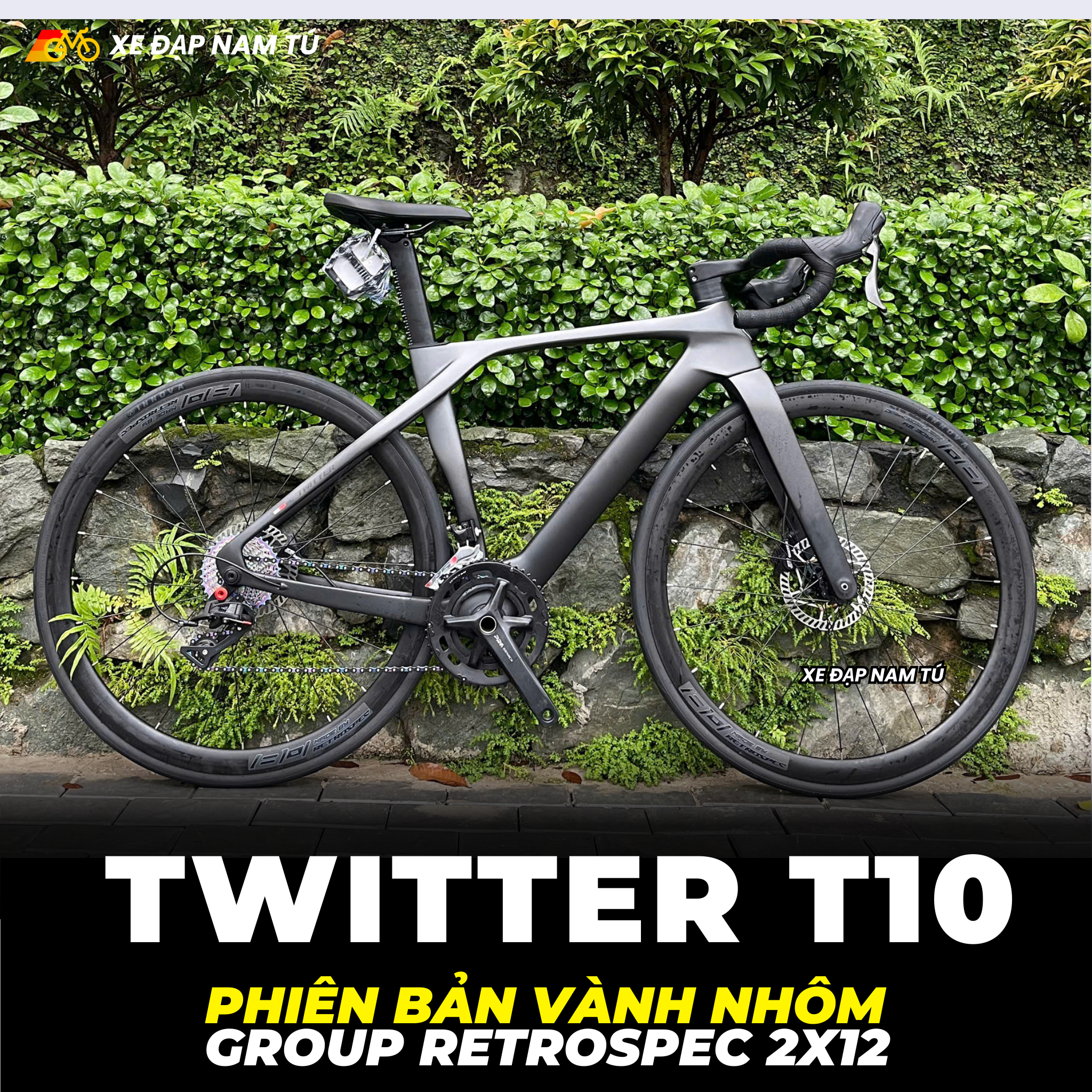 XE ĐẠP ĐUA TWITTER T10 [2026] CARBON, GROUP RETROSPEC 2X12, VÀNH NHÔM