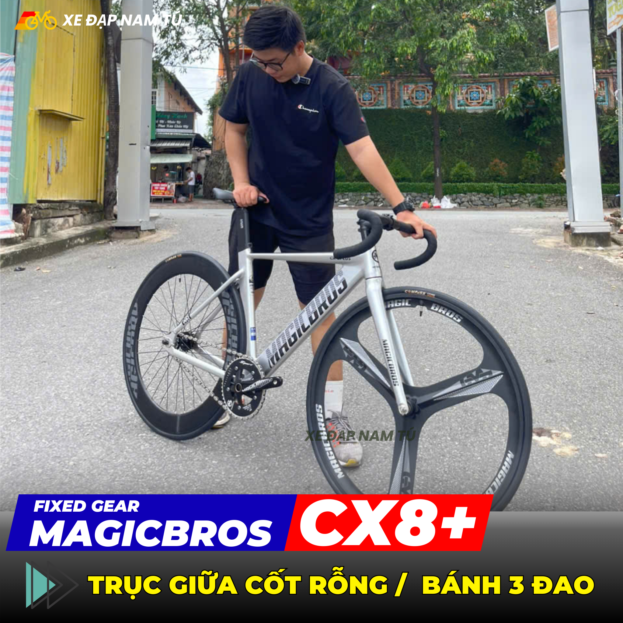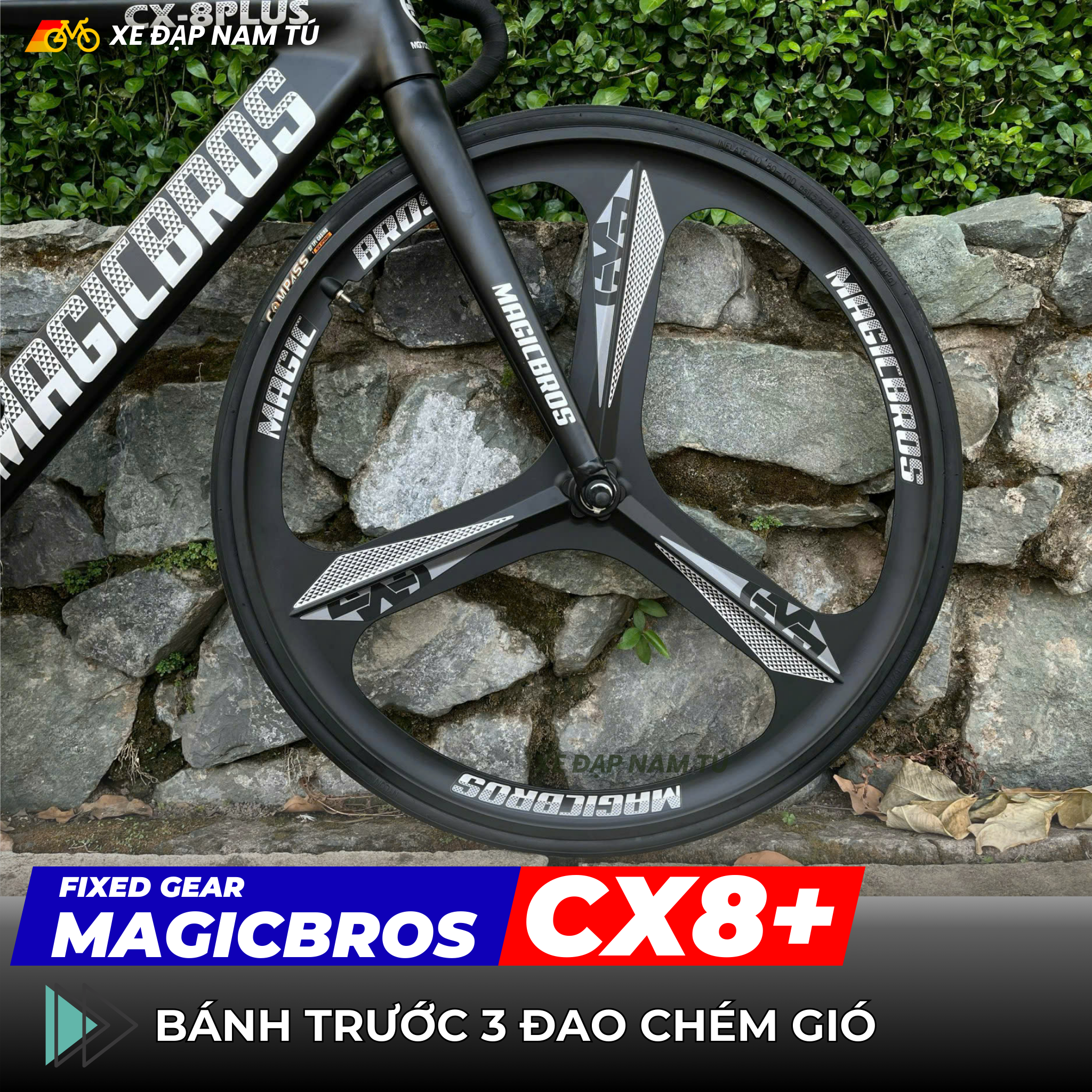 Xe đạp Fixgear MagicBros CX8 Plus - Mâm 3 đao trước