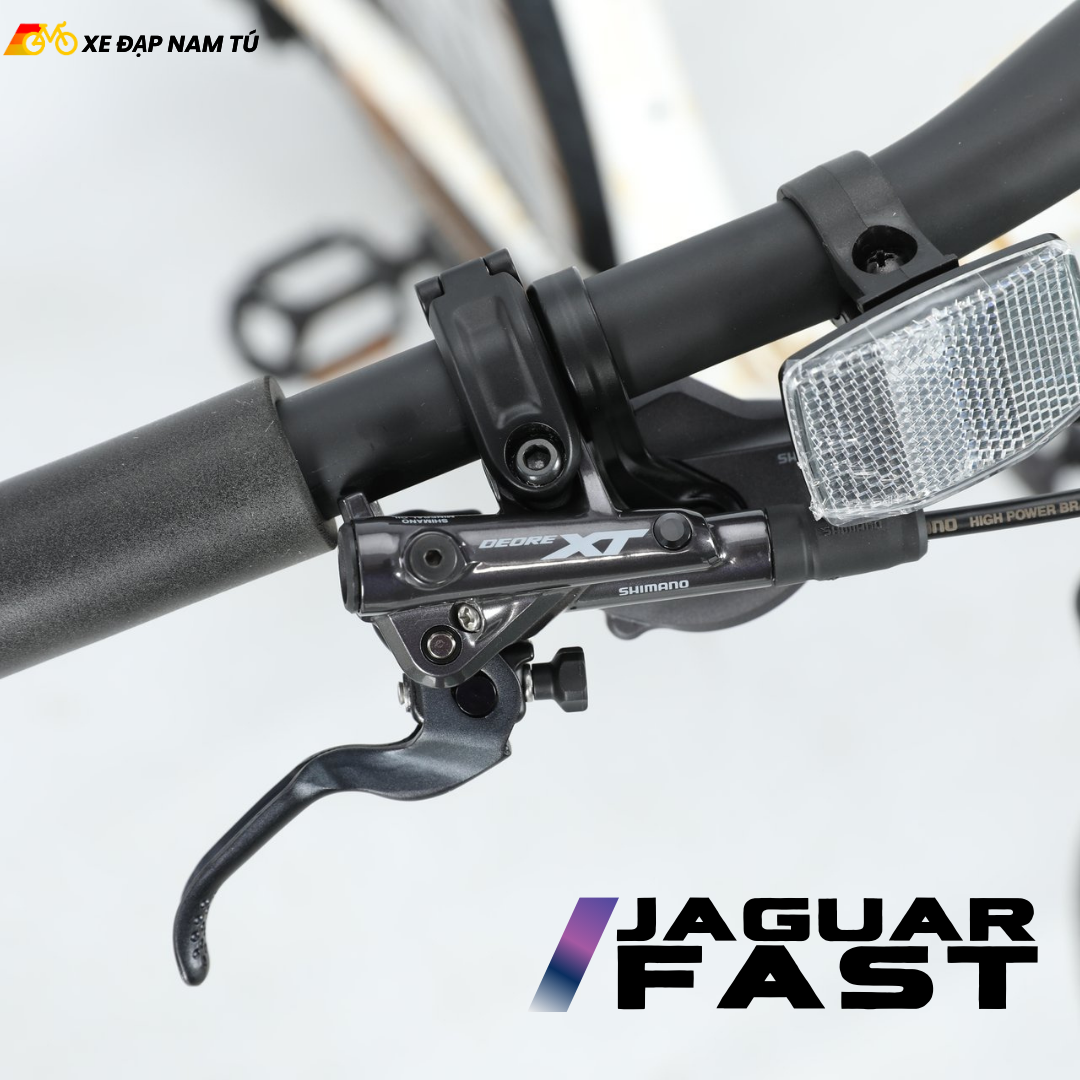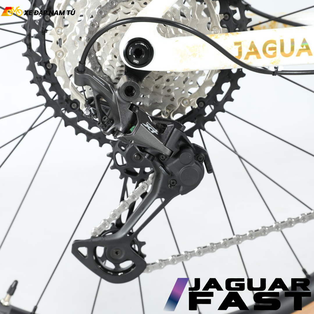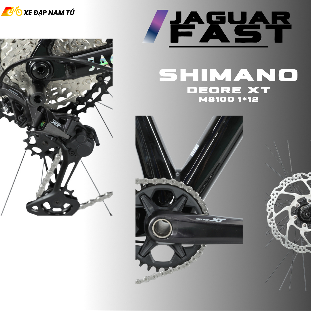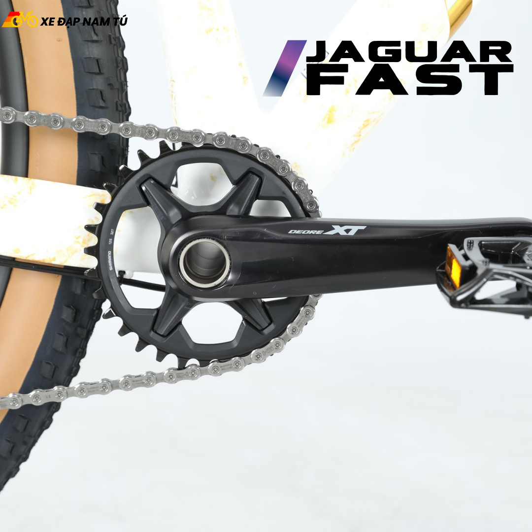 Điểm tạo nên khác biệt lớn nhất của JAGUAR FAST chính là bộ chuyển động Shimano Deore XT M8100 — một trong những groupset được giới MTB đánh giá cao nhất về độ chính xác, độ bền và hiệu năng thực tế.